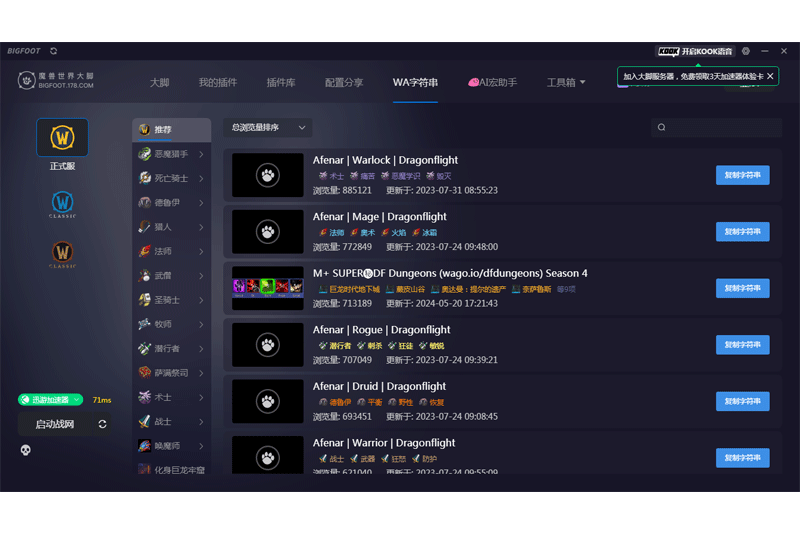 魔兽大脚怀旧服插件最新版是一款为魔兽世界怀旧服量身设计的辅助插件,是玩魔兽世界的玩家必备的插件。魔兽大脚怀旧服插件最新版为用户提供多种游戏辅助工具,魔兽世界怀旧服已经正式开服,想体验魔兽世界怀旧服的用户就可以使用魔兽世界怀旧服插件。
