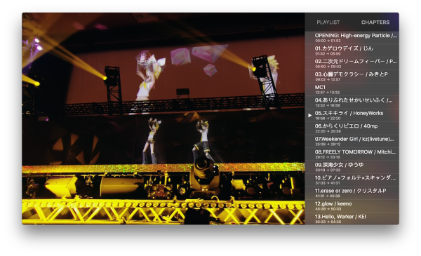 iina 支持简易的播放列表(更多功能稍后添加)。对于分章节的视频,它更是可以把内容及起始时间一目了然地列出。