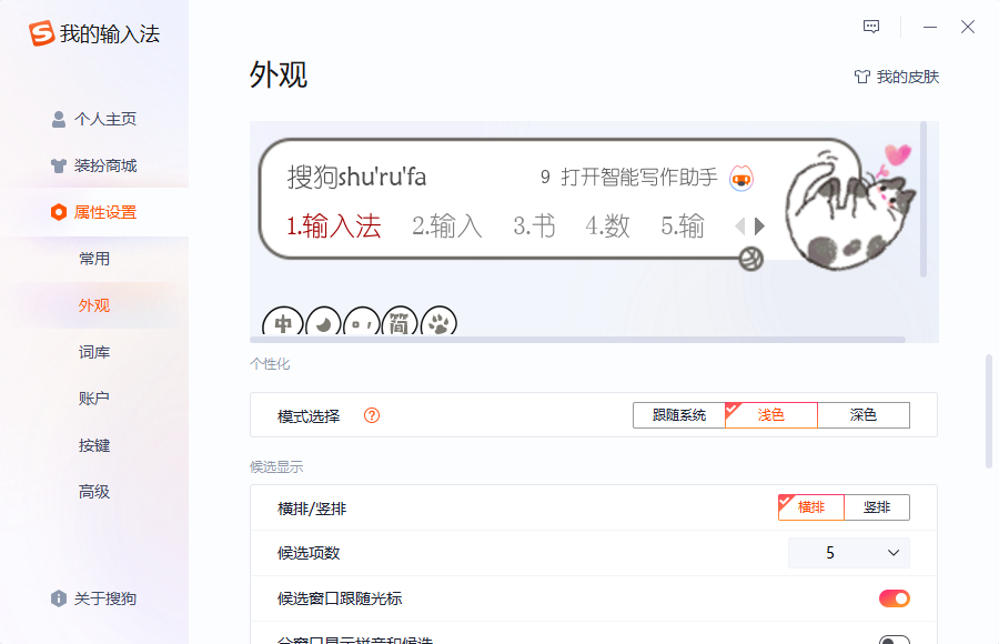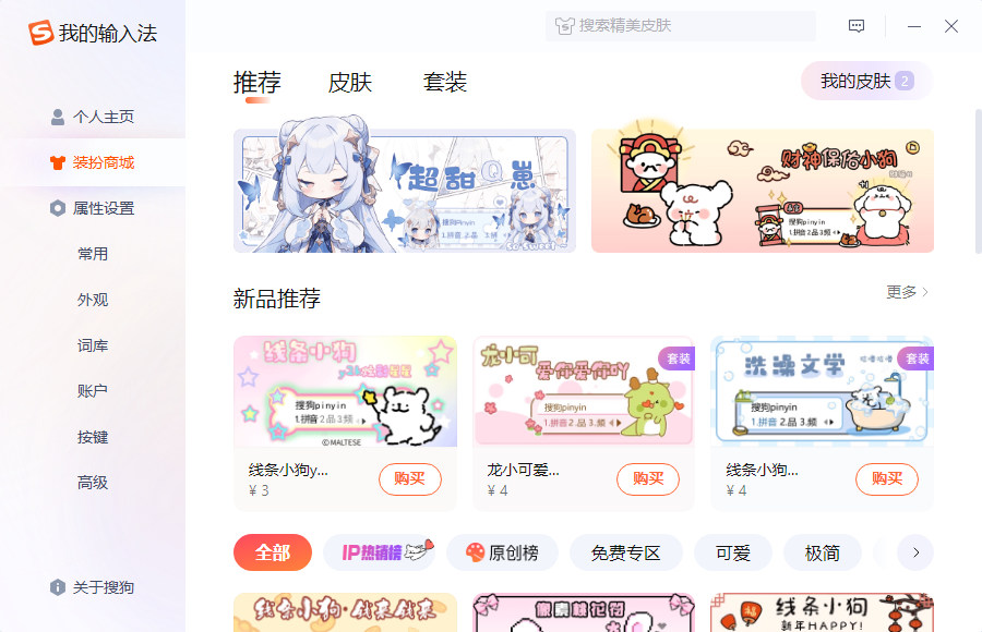 个性化皮肤:搜狗输入法提供多种个性化皮肤供用户选择,用户可以根据自己的喜好定制输入界面的外观,让输入更加个性化。