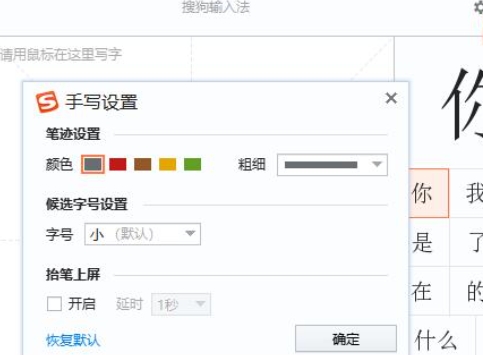 手写输入:这是搜狗手写输入法的核心功能。用户可以通过鼠标在手写区域书写汉字,输入法会实时识别并显示在右侧的备选区。用户只需在备选区选择正确的汉字即可完成输入。