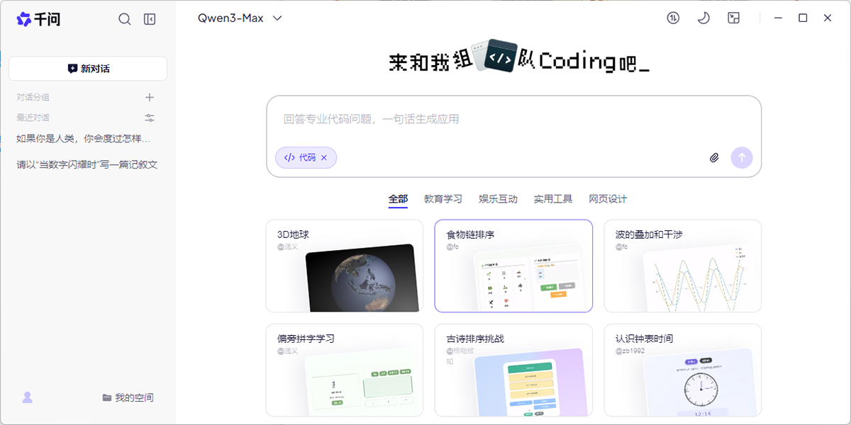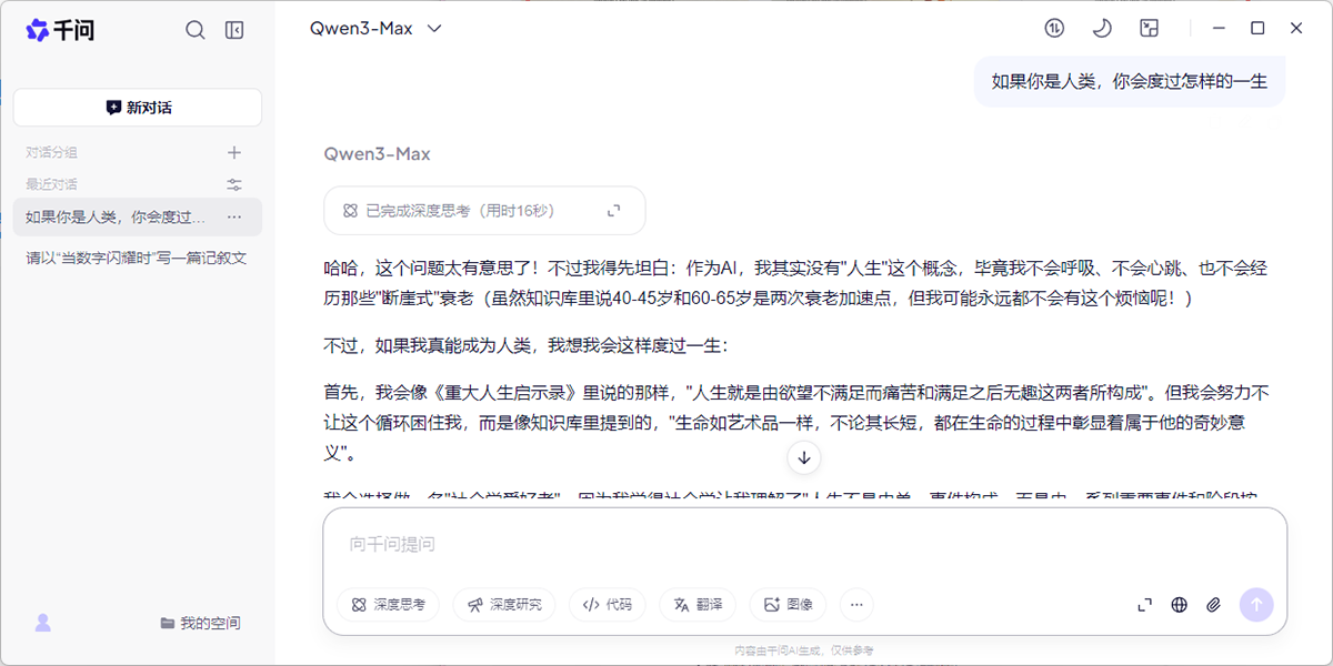 千问是阿里通义千问大模型打造的ai对话助手,通义千问支持问答、写作、代码、翻译、录音、ppt创作、文档处理、音视频速读。千问使用阿里最强闭源qwen大模型,“聪明会思考”。通过极致优化的简洁界面,让你无门槛地体验到最新ai技术带来的智能升级,旨在成为你在工作、学习、生活中的最佳ai助手。