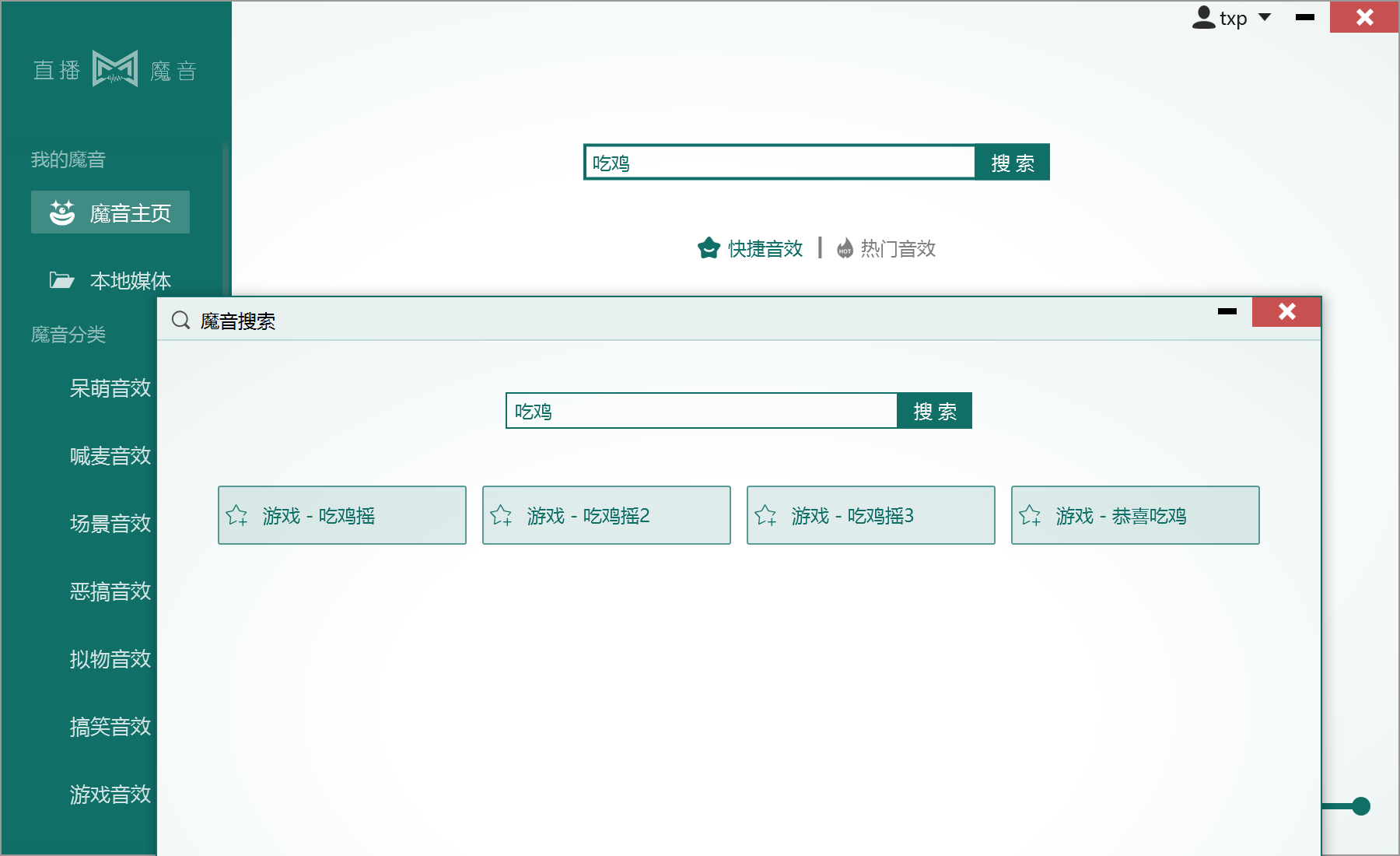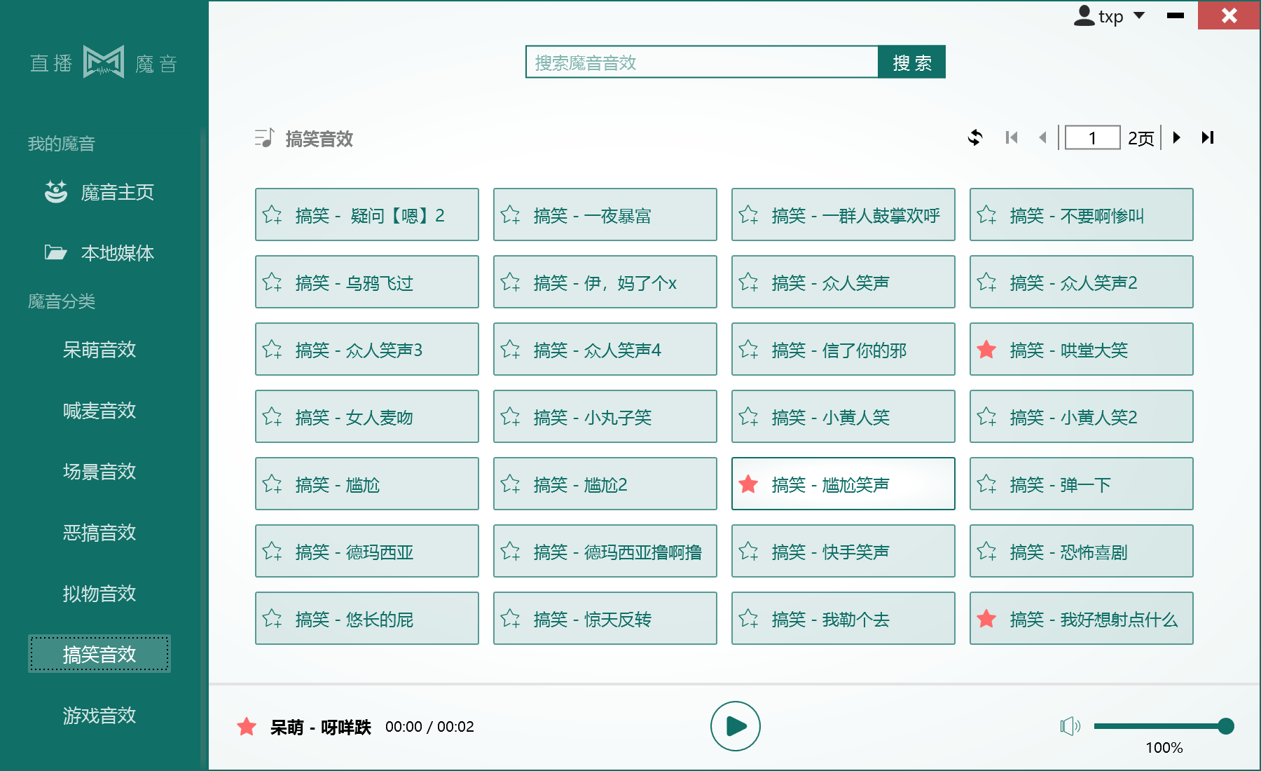 直播魔音官方版是一款专门为主播设计的音乐播放软件,直播魔音官方版为主播提供丰富快捷的音效播放功能,帮助主播活跃直播间气氛。软件具有丰富的音效库,搞笑、恶搞、拟物、呆萌、游戏、喊麦等等各种类型,应有尽有。软件支持全局热键播放音效,软件会随时更新音效库,为主播们提供热门流行音效。