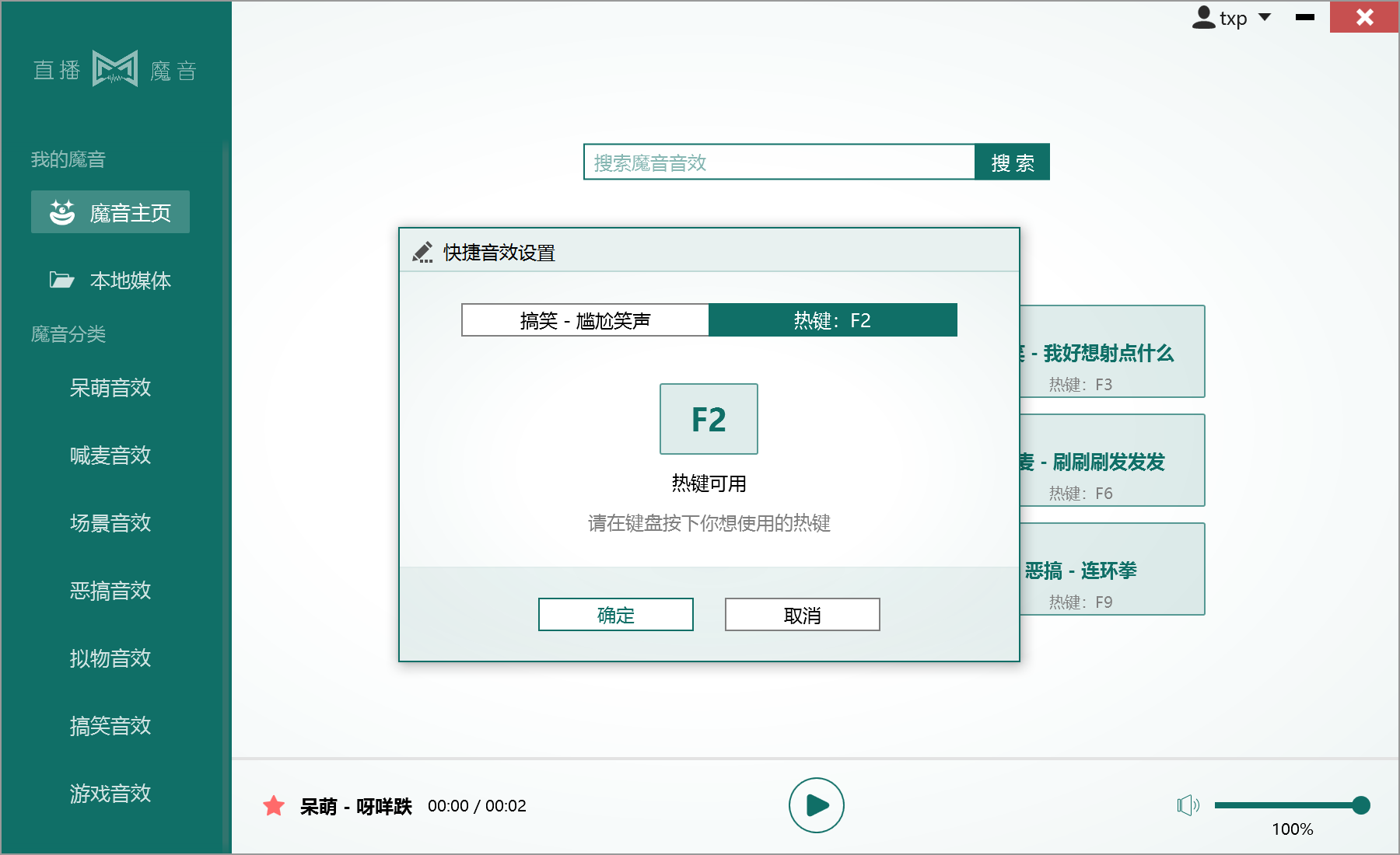 您也可以导入您自己电脑中的音效,并为他设置快捷键,方便直播时快速播放。