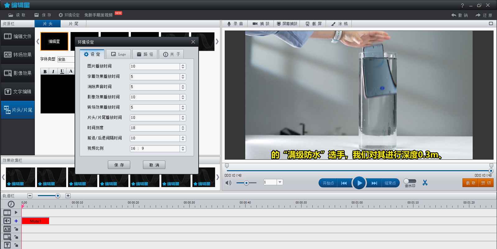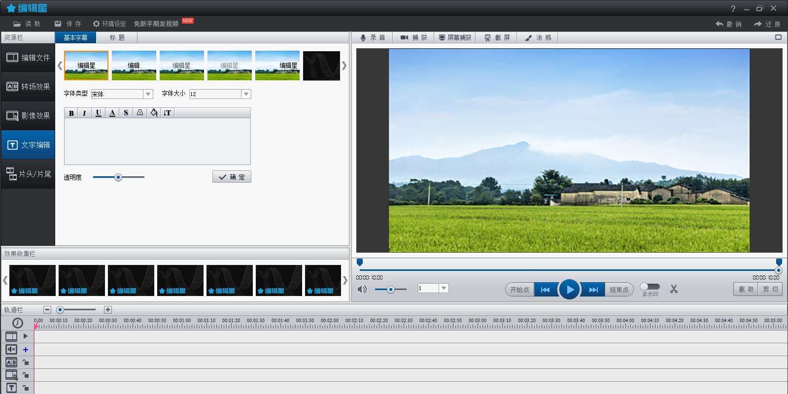 4.专业时尚的文字编辑功能,包括片头片尾、字幕、标题。