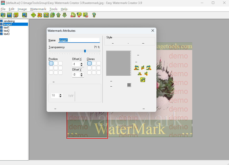 将添加水印的图像保存为gif、bmp、png、tiff(包括多页tiff)、pdf、swf或jpg文件;