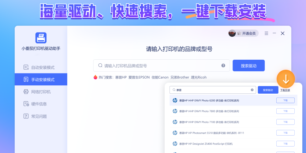 手动搜索打印机品牌或型号,快捷下载官方驱动