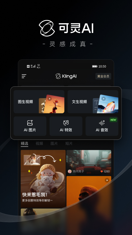 可灵ai 是广受海内外创作者好评的新一代创意生产力平台,基于可灵大模型和可图大模型,提供视频、图片生成与编辑能力。在这里,你可以尽情发挥想象力,也可以参考其他创作者的创作灵感,让创意完美落地。
