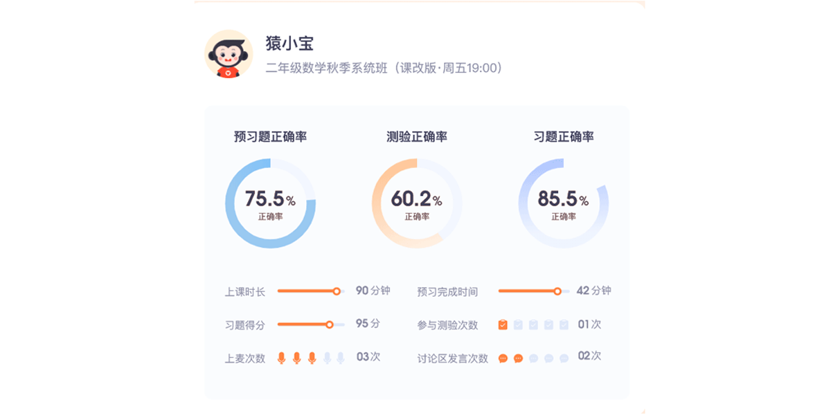 猿辅导学生版依据学习能力定制专属课件,例题和练习的难度最适合你的水平;