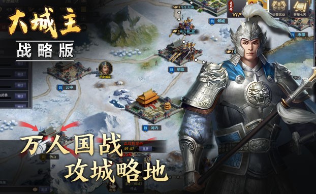 《大城主》是以三国时代为背景的一款游戏,你将成为一代君主,引领传世名将驰骋沙场,精妙绝伦的人物立绘,丰富的三国名将搭配,万人战场,攻陷城池,防守领地,靠智谋和胆识,统一天下!