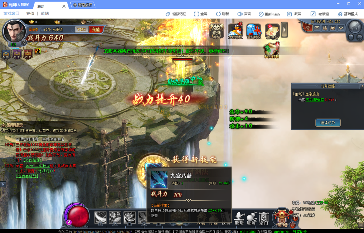 《乾坤大挪移》是一款角色扮演类武侠题材游戏。采用最新场景编辑技术,真实还原了动态场景互动、场景环绕音效,配合美轮美奂的场景原画制作,力求提供玩家完美的浸入式体验。各种创新系统玩法,均以传统武侠小说为依托,还原轻功战斗、武学筋脉、盖世神兵等武侠要素,创建一个高自由度的武侠世界,选择行侠仗义替天行道或者自在逍遥不羁此生,均在玩家一念之间。而围绕此世界观建立起来的各种跨服pvp玩法,无论想单人pk或者大规模团队战斗,都能一一满足。