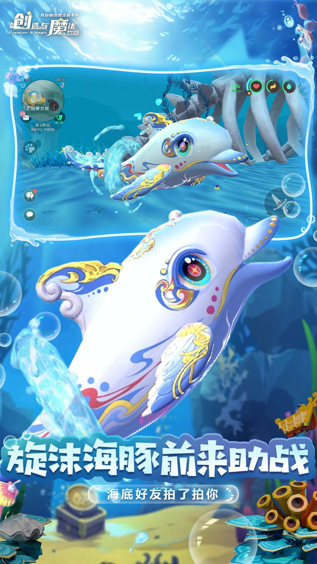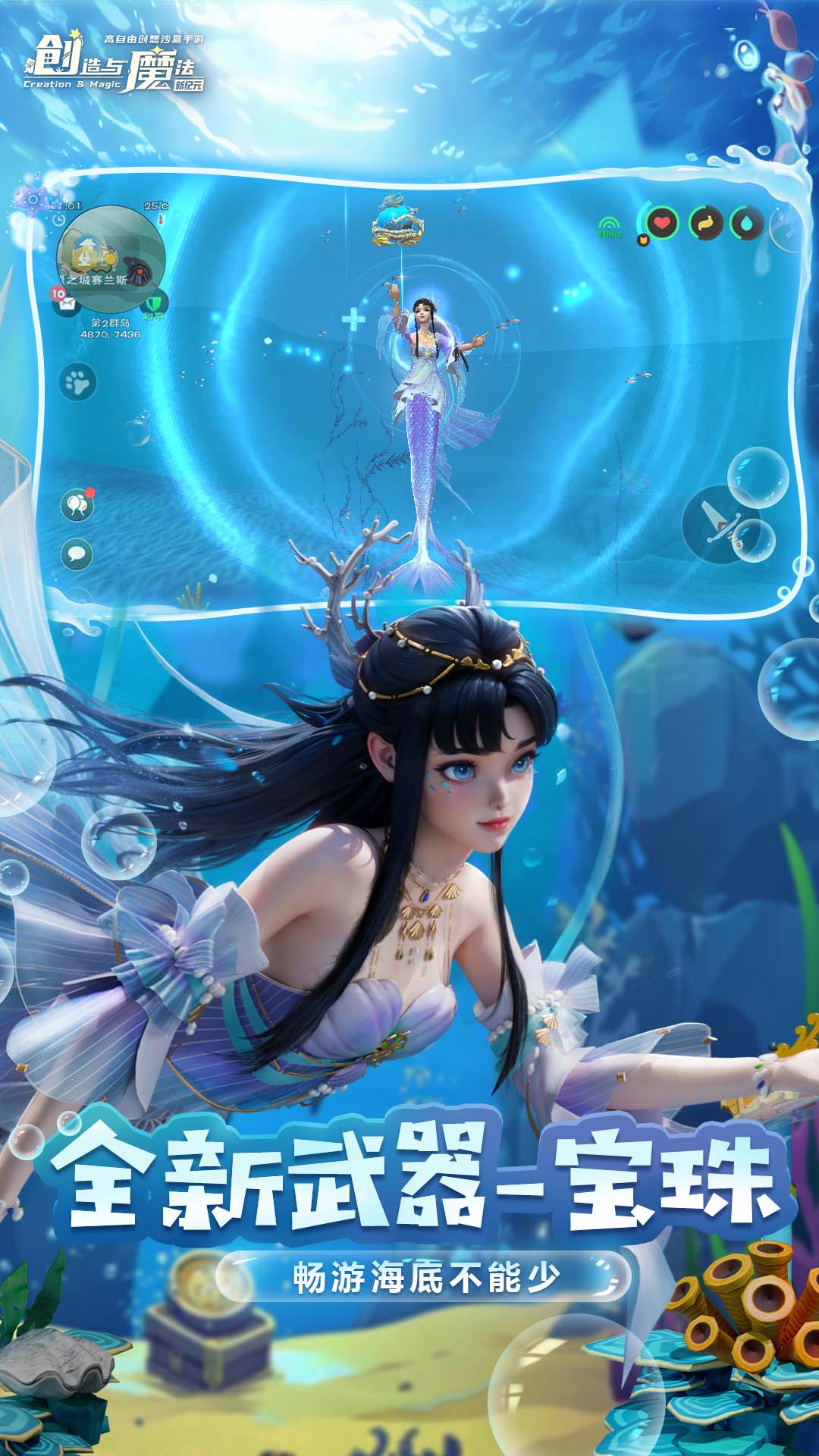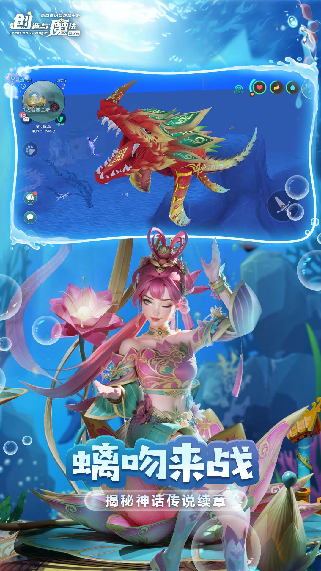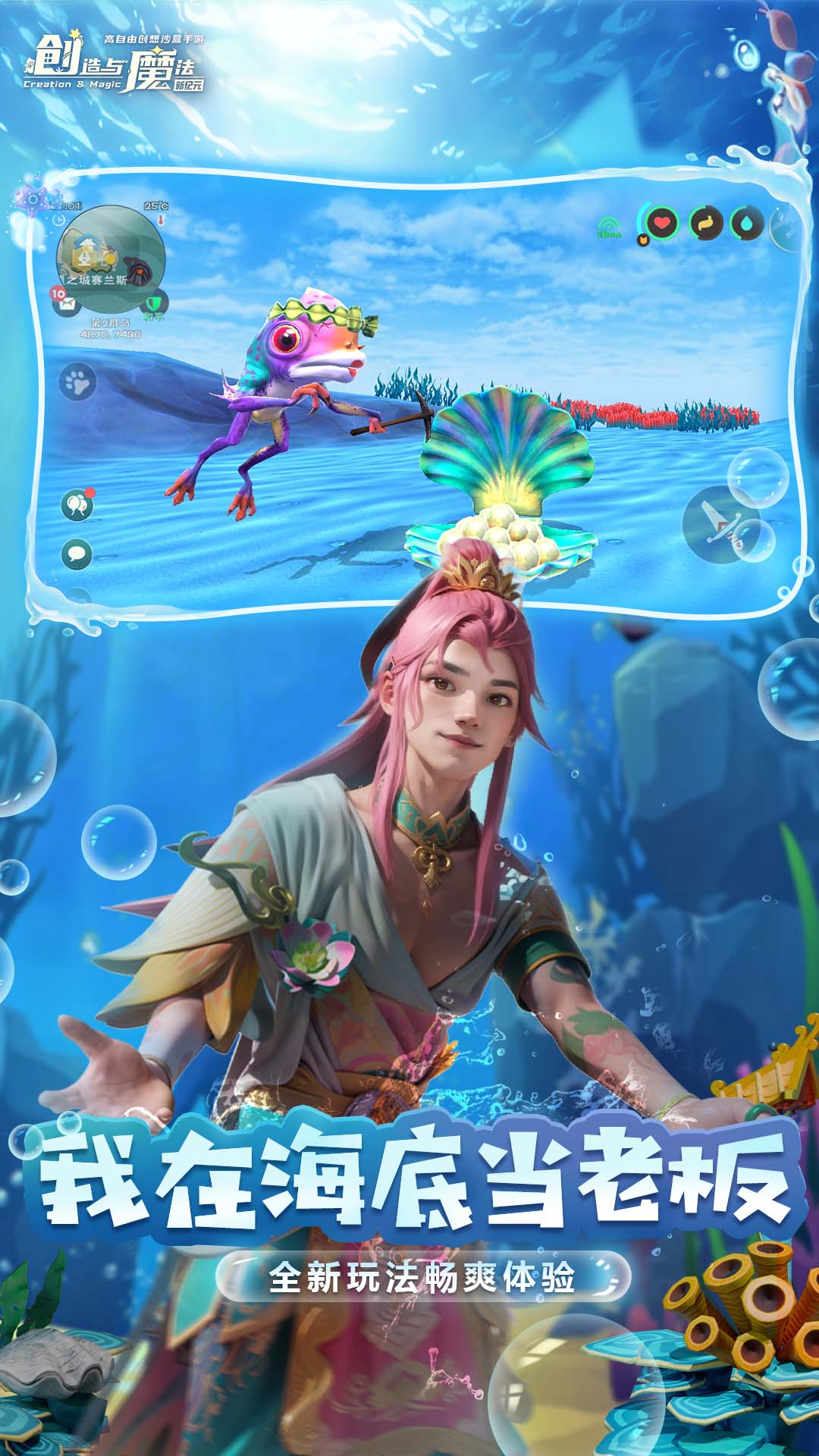 千万人联机梦幻沙盒手游《创造与魔法》,是一款可以改造环境,自由建造房屋、城池、城邦甚至国家,同时还能探险,交友、副本、换装的高自由生存手游。玩家可以在沙漠、丛林、草原、海滩等多种不同环境降生,探索上古遗迹,创造属于自己的文明。