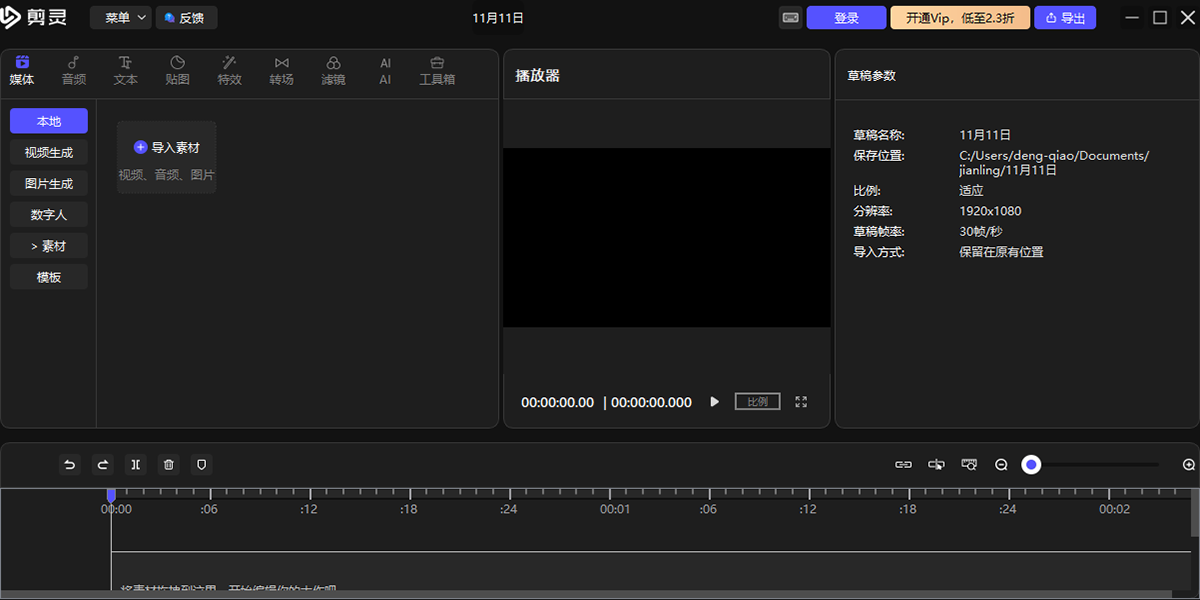 软件提供丰富的素材库,包括背景音乐、音效、图片、动画等,方便用户直接使用。支持在线下载和本地导入素材,用户可以根据自己的需求灵活选择。