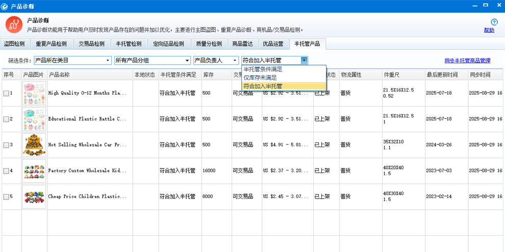 产品多维度批量编辑,直接对问题产品进行深度优化,全面提升旺铺效果