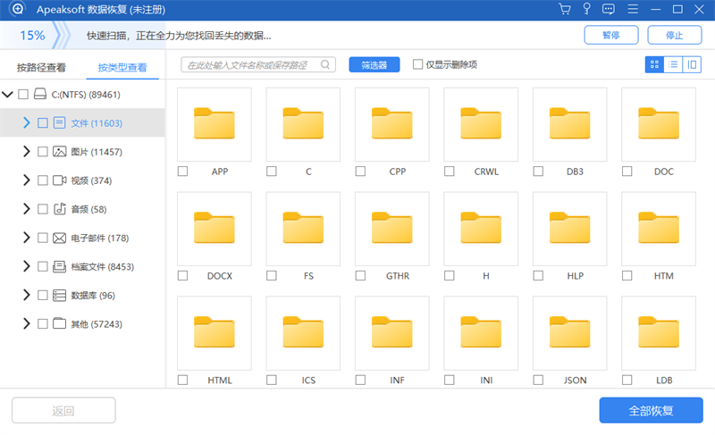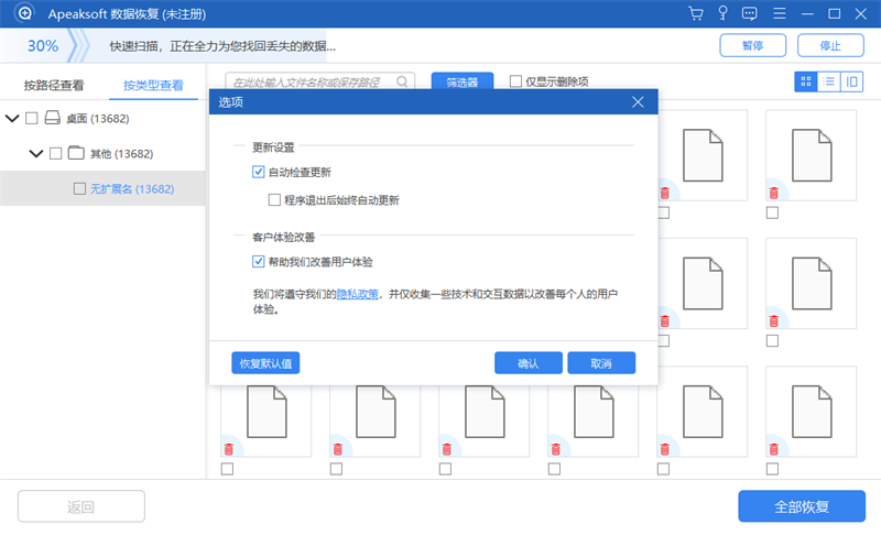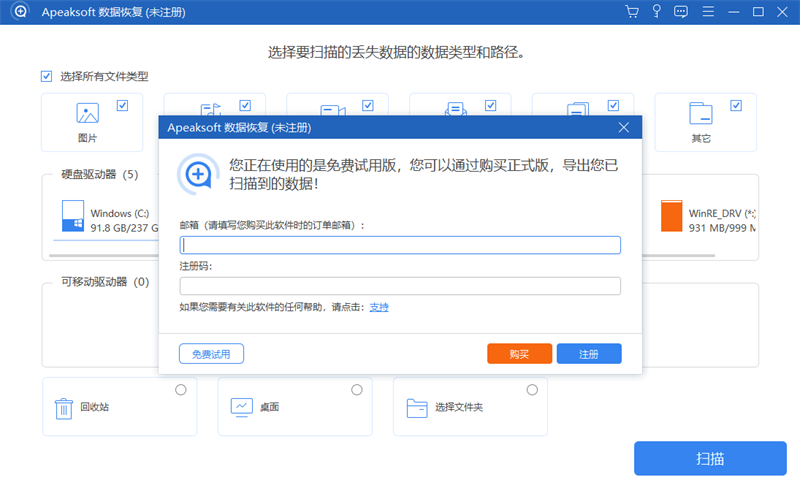 apeaksoft data recovery为用户提供了专业的数据丢失问题解决方案,可以一键恢复您指定的数据文件到指定位置。使用能够帮助用户轻松地从计算机,回收站,硬盘/闪存驱动器,存储卡等各种设备中恢复所有类型的数据,如图片,歌曲,视频,文档,电子邮件和其他文件都可轻松完成恢复,软件可高效完整的扫描您的文件,并进行100%的安全恢复。