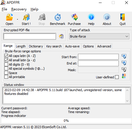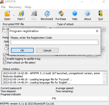 apdfpr是一款功能强劲且高端实用的pdf密码恢复的软件,apdfpr能够立即解锁pdf限制,并启用编辑,打印和复制锁定的pdf文件。通过可配置的攻击恢复原始的pdf密码。借助专利的雷霆表技术,在一分钟内打破40位加密,对于办公人员的帮助有显著的帮助。