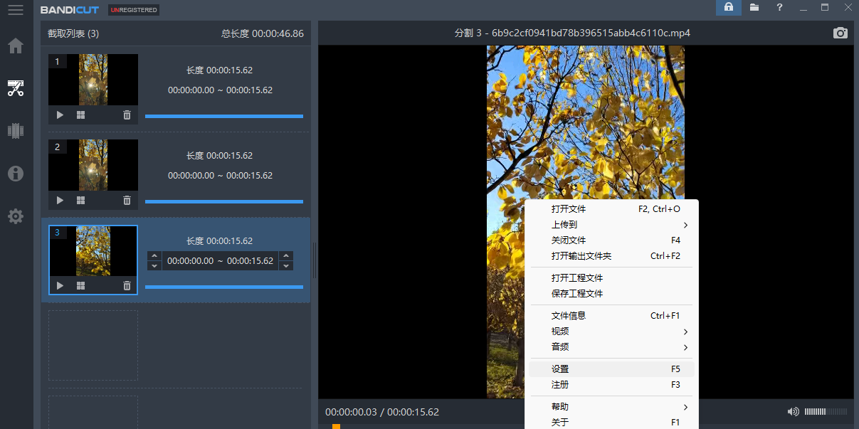 bandicut (班迪剪辑) 一款极致的视频高速无损分割和拼接工具,操作简单且功能强大。可以让你轻松从一个视频中高速无损的分割出你所需要的精彩片段,或者拼接多个视频片段合为一个完整的视频。同时也支持从视频中以 mp3 格式单独导出音频。