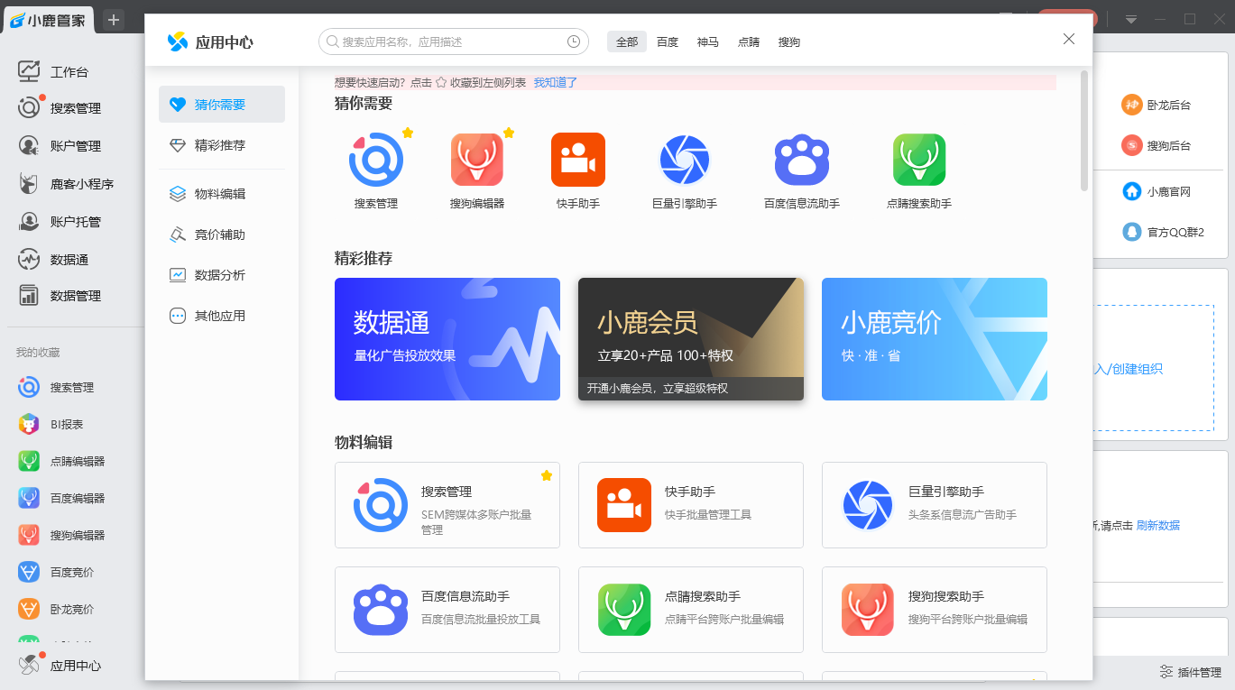 小鹿百度助手是可以帮助用户立即对关键词竞价,轻松提升自己的排名,非常的实用。该软件还提供多个账号登录,可以登录几个推广账号,方便简捷。欢迎广大用户下载哦。