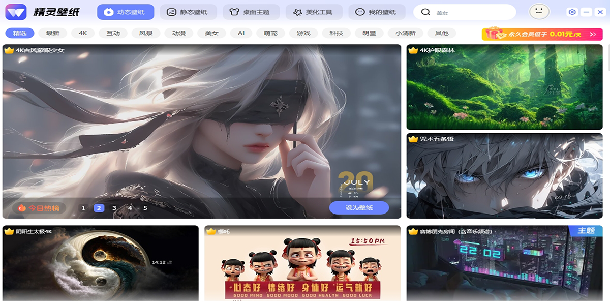 精灵壁纸拥有海量超清4k壁纸的软件,每日更新二次元、风景、美女、萌宠、游戏等分类壁纸,自研动态壁纸引擎,让桌面栩栩如生。
