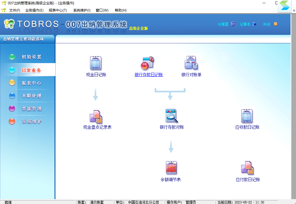 图布斯出纳管理系统高级企业版,集成出纳资金管理,应收应付往来账款管理,进货销货与发票管理,借款管理,支票、进账单等银行票据管理,承兑汇票管理,收据与支出单管理,以及自定义票据打印与管理于一体的精细化出纳财务软件。