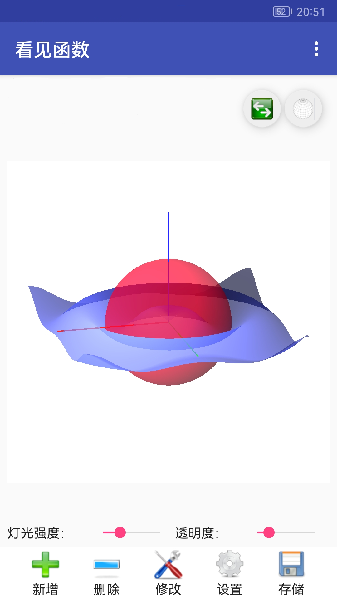 绘制带可变参数的空间曲面,可以调节参数观察曲面的变化:支持普通的z=f(x,y)形式的方程,球极坐标方程和参数方程,不支持隐式方程,最多可以带3个参数。