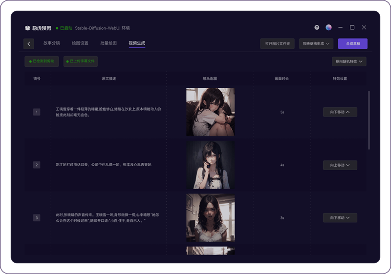 极虎漫剪是一款优秀的漫画剪辑、小说推文生成工具,是一款集成ai创作能力和sd绘图能力的小说推文创作提效工具,使用者通过极虎漫剪可以快速、方便、简洁、高效的制作视频、图片等形式的小说推文工具。