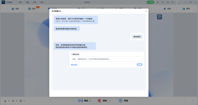 快来使用万兴智演,通过简单又富有创意的讲演文档、讲演视频制作,进行更加智能高效的展示吧!