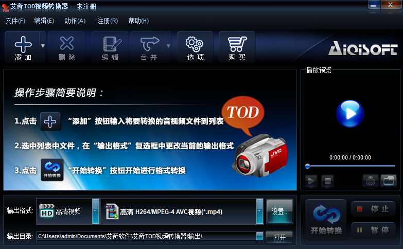 艾奇tod视频转换器是一款专业的针对jvc等高清摄像机tod视频格式的转换工具,可以将tod格式转换到各种常见视频格式,支持将tod转换成avi、wmv、mp4、mpeg、3gp、flv、vob、rm等近百种格式,可以方便的将文件导入视频编辑软件进行编辑。