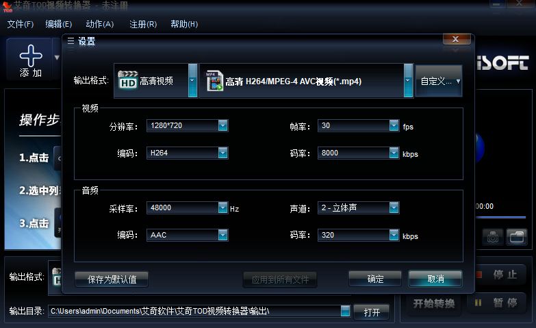 艾奇tod视频转换器软件界面友好,简单易用,尊重用户的使用习惯。更有强大的视频编辑功能,可以对视频进行剪辑、裁切、去黑边、加水印等操作。而且支持视频合并、和批量转换。