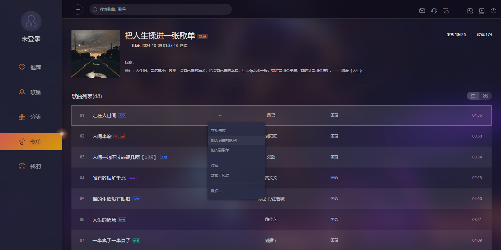 收藏、歌单、云盘