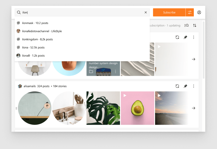 订阅您的朋友或任何其他instagram用户关注的instagram帐户的下载。实时观看界面中出现的新帖子,就好像这是他们的instagram订阅源一样。