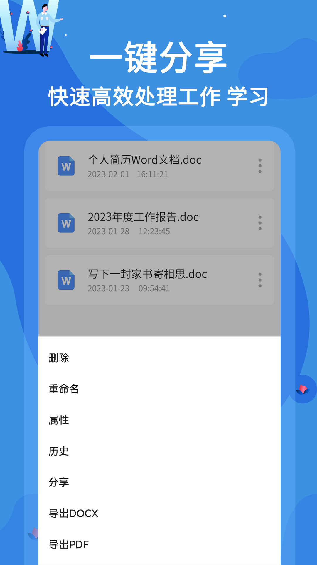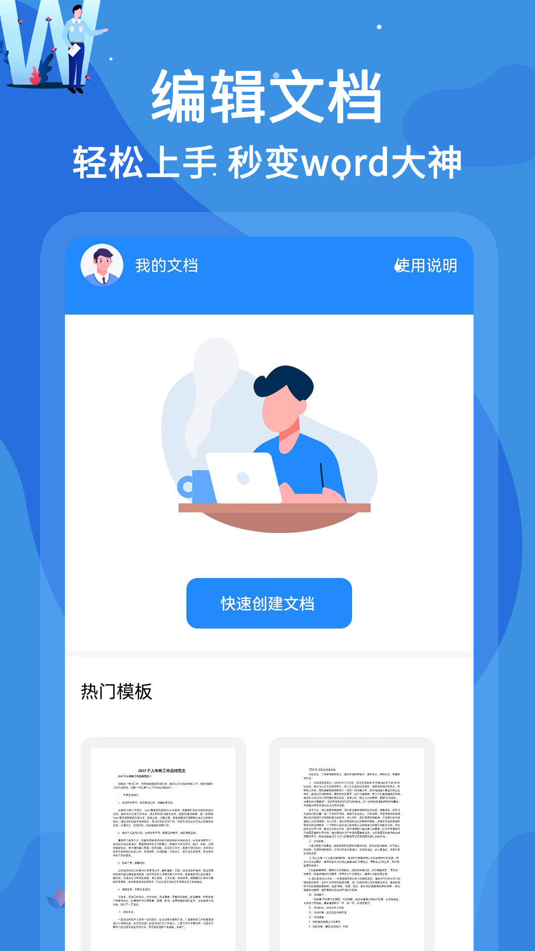 word文档编辑是一款以文字编辑和处理为主要功能的产品。各个平台可以无障碍分享,是一款简单的便捷的办公互助文档。应用内的文档编辑有自动保存的功能,用户不用担心自己千辛万苦写的文档因为切换应用或者其他的操作而消失。文档也可以一键分享和导出,生成pdf和word的专用格式一键分享和导出。应用的界面清爽无杂赘,用户操作起来方便快捷,提高用户的办公效率。应用内以文字编辑为基础功能的前提下有完美的文字处理功能,完美的沿袭了pc端流畅的用户体验和wps office的功能结合安卓版触控体验,字体的大小和样式,用户可以随心所欲的设置更新。用word应用一点文本格式化操作或图片处理,也可以使简单的文档变得比只使用纯文本更具吸引力。