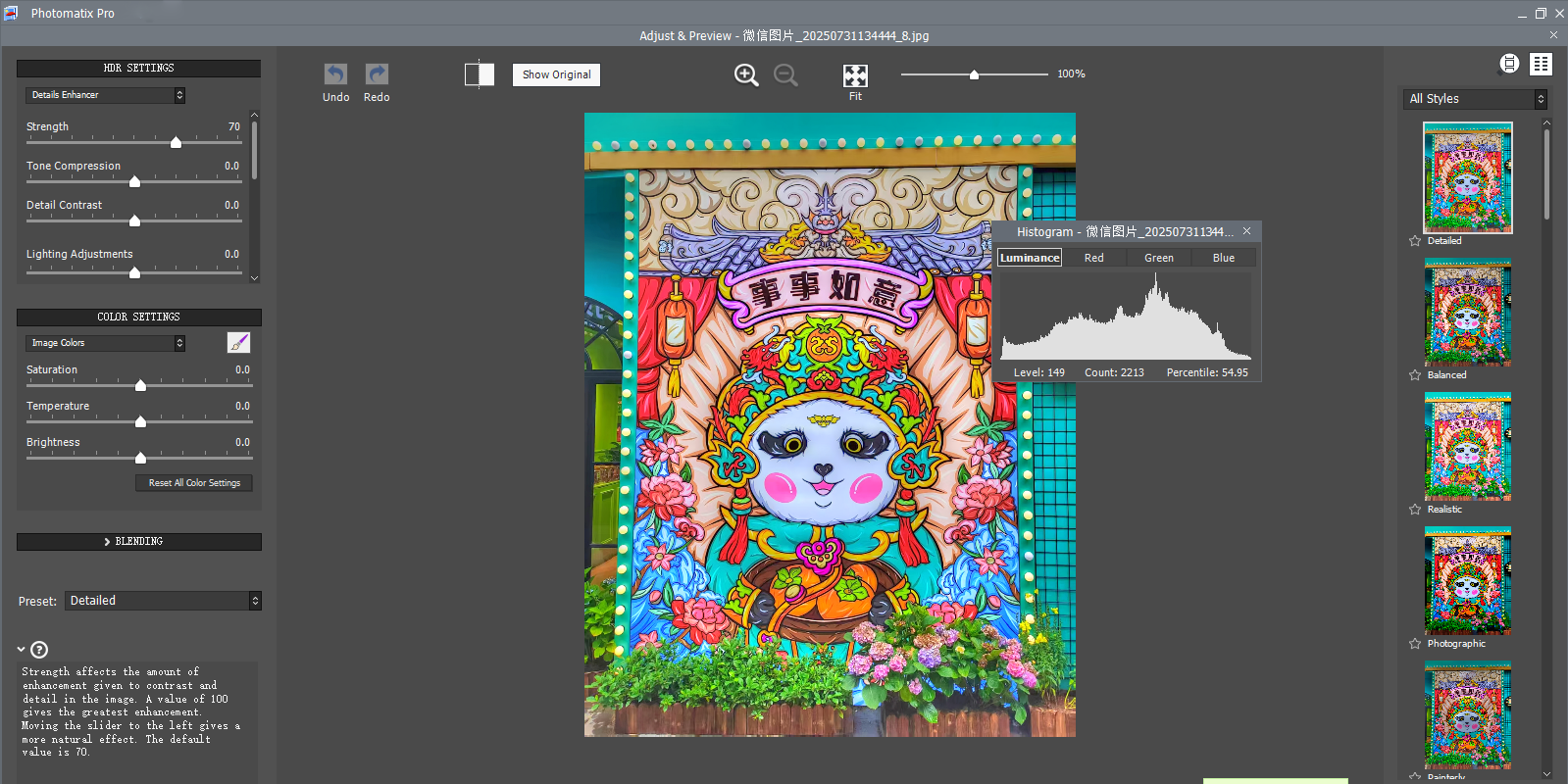 除了 hdr 处理外,还支持对单张照片进行色彩调整、白平衡校正、降噪等操作,提高照片的质量。