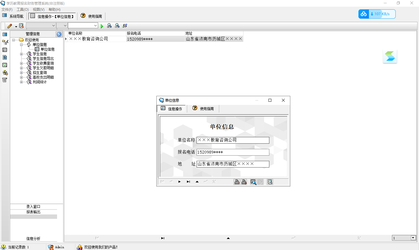 单位信息:id 单位名称 报名电话 地址