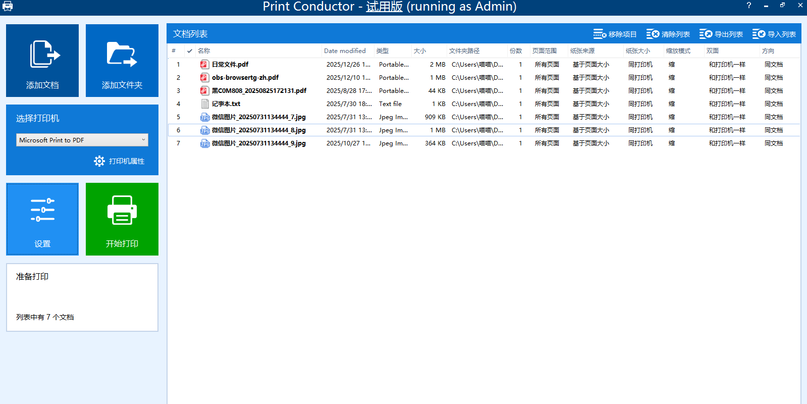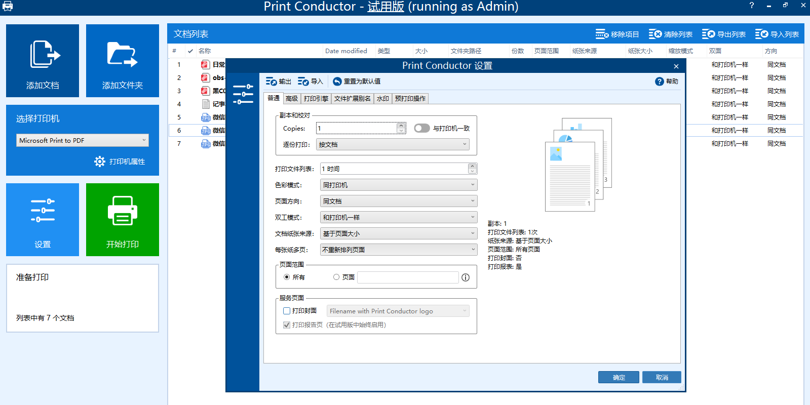 print conductor是一款优秀的文件批量打印工具,如果你想一次性批量打印多种格式文档的话,print conductor能够在不打开文档的情况下,批量打印不同格式文档中的内容,print conductor支持对 pdf、doc, wri, wps, rtf, txt等格式文档进行打印,软件可配置100多种高级打印设置,适用任何打印机,包括本地打印机、网络打印机或虚拟打印机。
