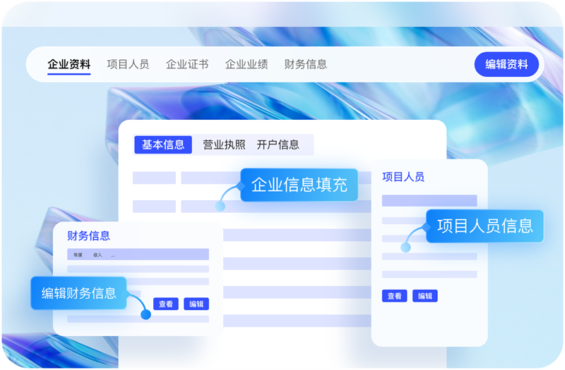 涵盖:项目人员、企业证书、企业业绩、财务信息等