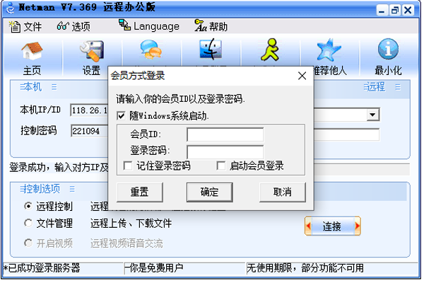 3.远程文件管理:上传、下载文件,远程修改、复制、粘帖、运行文件,实现连接双方电脑的资源共享,用于远程办公等。