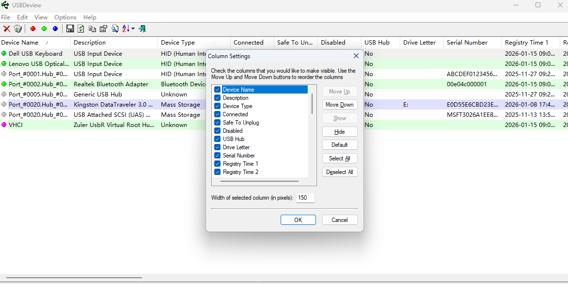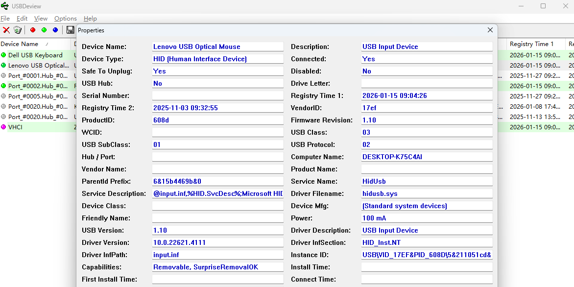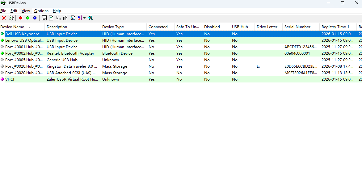 1 usbdeview可以列出设备的名称和描述、设备添加的日期以及最后连接的日期以及其它信息。