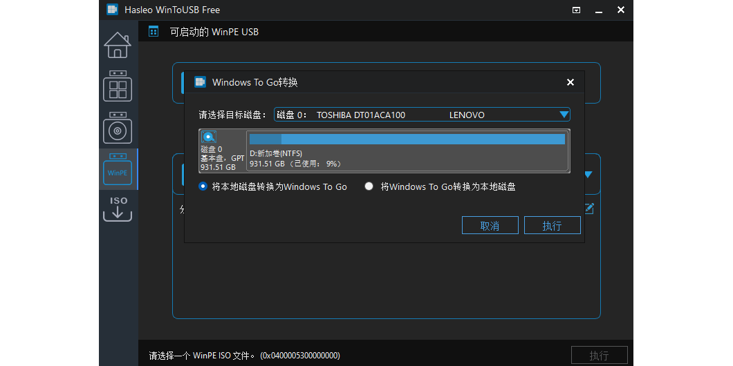 wintousb 是一个windows to go 创建器软件,可以将 windows 操作系统从一个 iso、wim、esd、swm、dbi (dbi 是 hasleo backup suite 生成的备份镜像文件) 文件或 cd/dvd 光驱安装到 usb 移动硬盘、u 盘和 thunderbolt 驱动器,还可以帮助您将当前正在运行的 windows 操作系统(windows 7 及以后版本)克隆到 usb 移动硬盘、u 盘或 thunderbolt 驱动器,因此可以在 usb 移动硬盘、u盘或 thunderbolt 驱动器上运行 windows 操作系统(微软称其为 windows to go,通常称之为 windows live usb 或便携式 windows)。wintousb 的另一大功能是使用 windows 7 及以后版本的 windows 安装镜像创建 windows 安装 usb 驱动器,因些您可以使用 usb 驱动器轻松地安装 windows。最后 wintousb 支持创建基于 winpe 的 usb 启动盘,它能够帮助您将 winpe 启动镜像或启动光盘中的内容迁移到 usb 移动硬盘或者u盘并保证可以从 usb 启动。