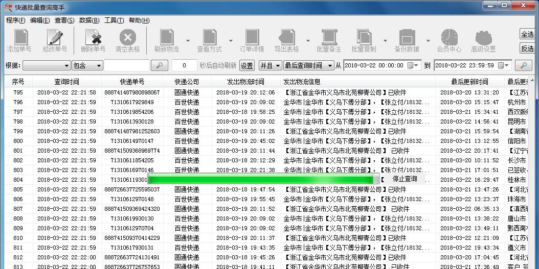 灵软快递批量查询高手(原晨曦快递批量查询高手)提供上百家快递查询,自动识别快递公司,批量查询快递单号,统一管理快递,支持导出csv/excel表格、多种筛选方式。表格一目了然,易操作,订单详情独立,非常方便。适合各路电商、微商精英们的使用。软件主要功能:批量查询快递单号、多种导入/导出单号的方法、多种单号生成(滚单)方式、超级查单、云数据库同步保存/读取、单号跟踪提醒等。