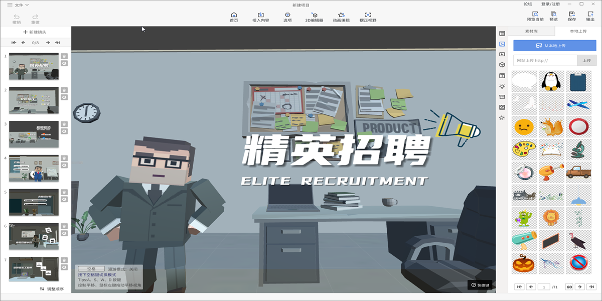 魅演3d是一款简单有创意的3d ppt与动画演示制作软件,有丰富的3d场景,实现场景到元素的3d动画演示,适用于产品展示、教育教学和科普解说等场景。