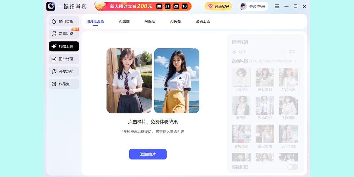 一键拍写真软件操作便捷,无需复杂操作过程,就可以制作高质量写真艺术照。