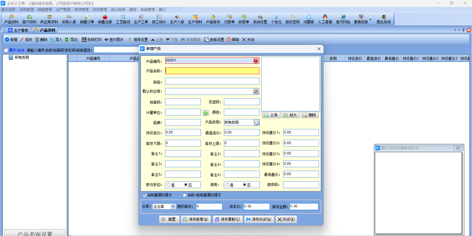 基本信息:产品信息,供应商,客户,产品分类,工序设置,bom,仓库等基本信息的设置;