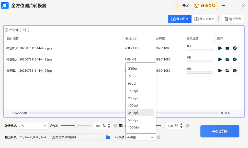 2、可以更改图片的颜色、画质、亮度、对比度、dpi等属性。