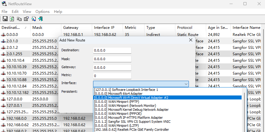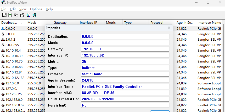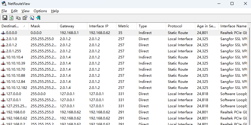 软件显示了当前网络上的所有路线清单,包括目的地,掩码,网关,接口的ip地址,公制值,类型,协议。netrouteview主窗口显示您的所有网络路由列表,如'打印'在windows路由实用程序的命令。你可以选择一个路线,然后将其删除(del键)或修改它(按ctrl + m)的。请注意,与'静态路由在本议定书仅列值的路线,可以删除或修改。也可以通过使用'新干线'选项(按ctrl + n)的一个新的路径。