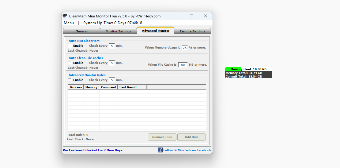 cleanmem是一款实用的内存清理软件,可以将电脑内的缓存进行释放,有助于大型游戏和软件的正常运行。软件支持多种启动方式,包括计划任务、条件触发等,同时也支持手动运行,满足不同场景的需求。此外软件还自带提醒的功能,当内存使用越来越多的时候软件会通过颜色提醒用户,及时清理内存。