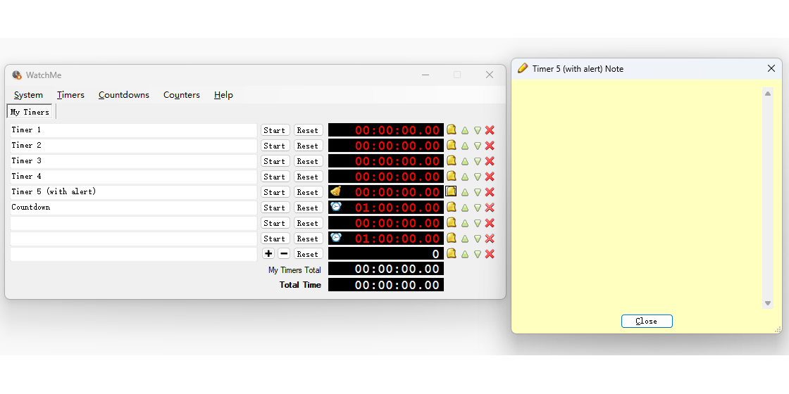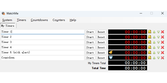 可以使用“ctrl+t”来新建。整个界面会随着日程数量的增加而变高。你可以同时出发多个日程,从而可以直观的看到还剩多少时间。