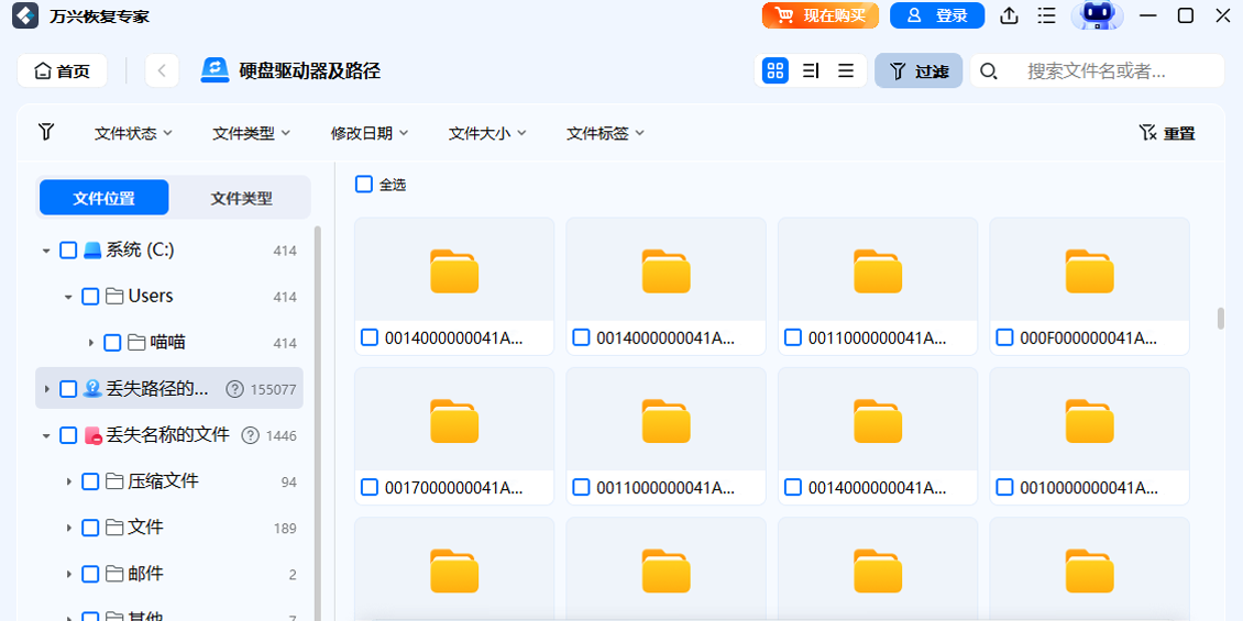 万兴恢复专家是一款数据恢复软件,支持windows电脑、苹果电脑、电脑硬盘、移动硬盘、u盘、存储卡、相机、摄影机、记忆棒、功能机、内存卡等存储设备的数据恢复。支持ntfs,fat16,fat32,hfs+,apf等存储模式下的数据恢复,能恢复被直接误删除的文件、清空回收站删除的文件、误格式化的盘符、分区丢失(分区表破坏、重新分区、删除分区)、分区损坏(dbr破坏、变成raw分区、根目录损坏、无法读取、双击盘符提示格式化)、盘符变空(u盘插拔后根目录消失但是已用空间还在)、加密软件弄丢的文件、chkdsk丢失的文件、重装系统忘记备份我的文档和桌面的资料、系统崩溃、中病毒后文件恢复等数据丢失情况。