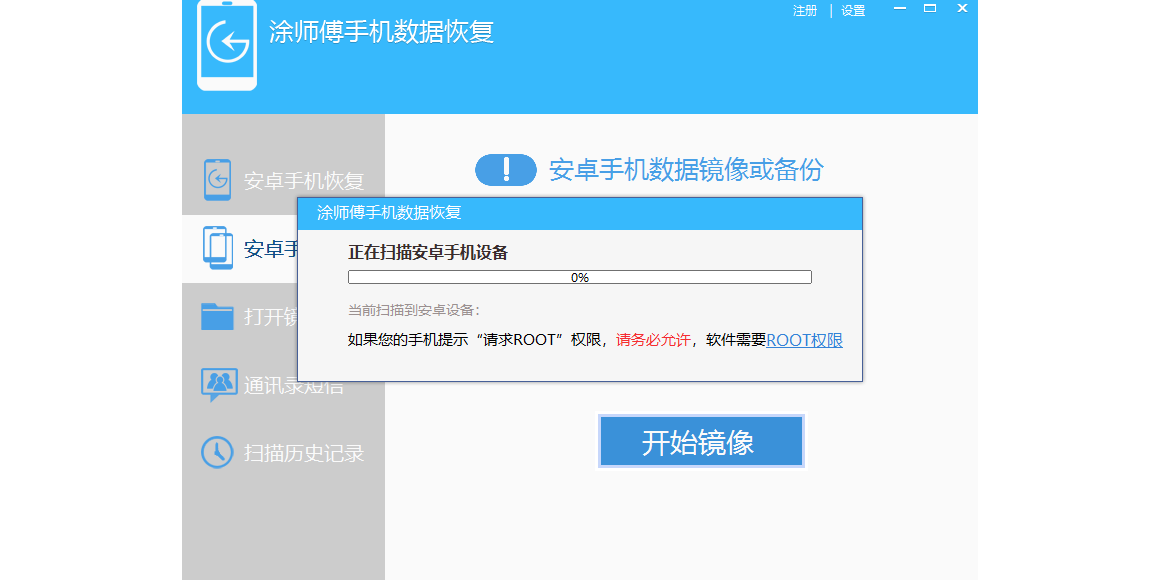 涂师傅手机数据恢复软件官方版是一款功能强大的数据恢复软件,涂师傅手机数据恢复软件官方版能够恢复安卓手机数据,软件件支持照片恢复、图片恢复、视频恢复、音频恢复、等诸多功能,软件需要root权限,并连入电脑,需要的朋友欢迎下载使用。