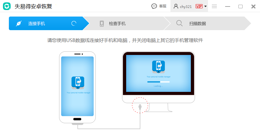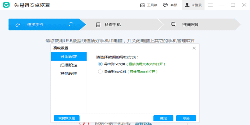 1、失易得安卓恢复可以更方便的检测手机,可以查看手机连接教程
