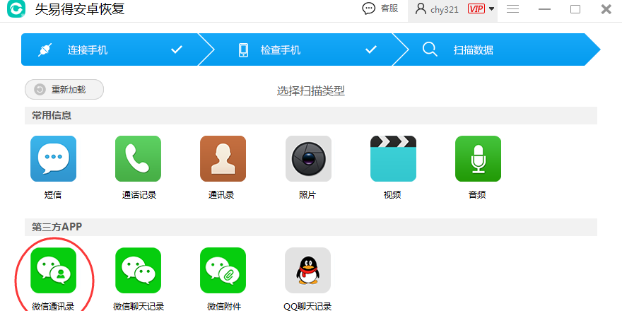 7、支持对微信通信录恢复,支持对微信聊天记录恢复